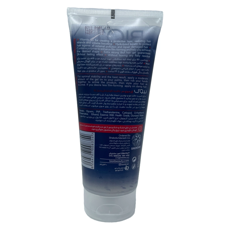 - کراتین هیدرولیز شده: پروتئینی که به بازسازی تارهای مو کمک کرده و آثار مخرب آلودگیهای محیطی را خنثی میکند. کراتین در ژل حالت دهنده مو اکسترا استرانگ بیول به افزایش استحکام و حجم موها کمک میکند.
