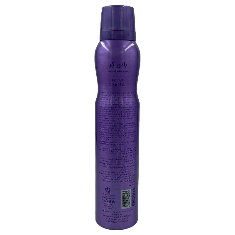 اسپری بدن زنانه اکلت بادی کر ۲۰۰ میلی لیتر شامل ترکیبات باکیفیت و هدفمند است که برای خوشبو کردن و مراقبت از پوست طراحی شدهاند:
