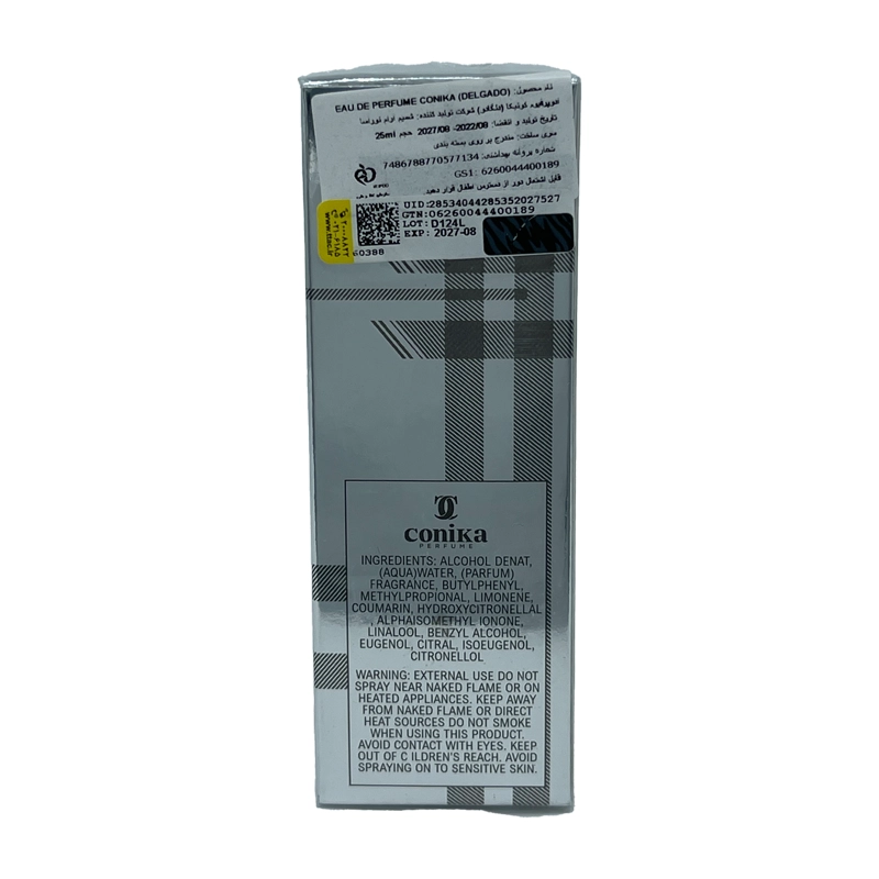ادوپرفیوم زنانه باربری دبیت دلگادو 25 میلی لیتر یکی از محصولات لوکس و باکیفیت برند دلگادو (Delgado) است که با الهام از عطر افسانه‌ای باربری د بیت (Burberry The Beat) طراحی شده است.