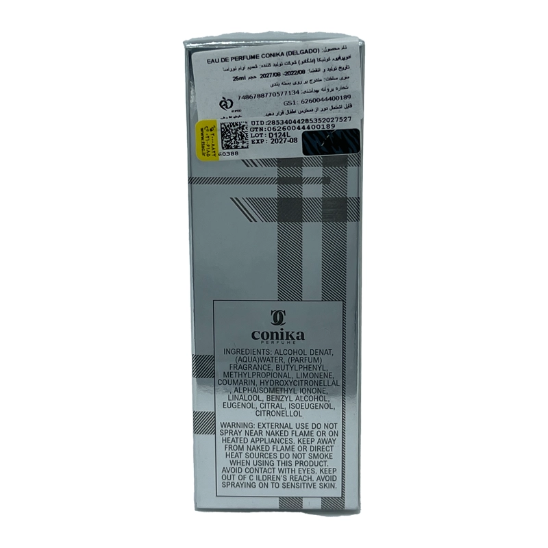ادوپرفیوم زنانه باربری دبیت دلگادو ۲۵ میلی لیتر یکی از محصولات لوکس و باکیفیت برند دلگادو (Delgado) است که با الهام از عطر افسانه‌ای باربری د بیت (Burberry The Beat) طراحی شده است. این ادوپرفیوم زنانه باربری دبیت دلگادو با رایحه‌ای شیرین، خنک و خوراکی، حس طراوت، سرزندگی و زنانگی را به بانوان هدیه می‌دهد. ادو پرفیوم زنانه باربری دبیت دلگادو با فرمولاسیونی غلیظ و ماندگار، رایحه‌ای متمرکز و دلپذیر را برای ساعت‌های طولانی ارائه می‌دهد و به بانوان امکان می‌دهد تا در هر موقعیت، از جلسات کاری تا گردهمایی‌های دوستانه، با اعتماد به نفس و جذابیت حضور یابند.