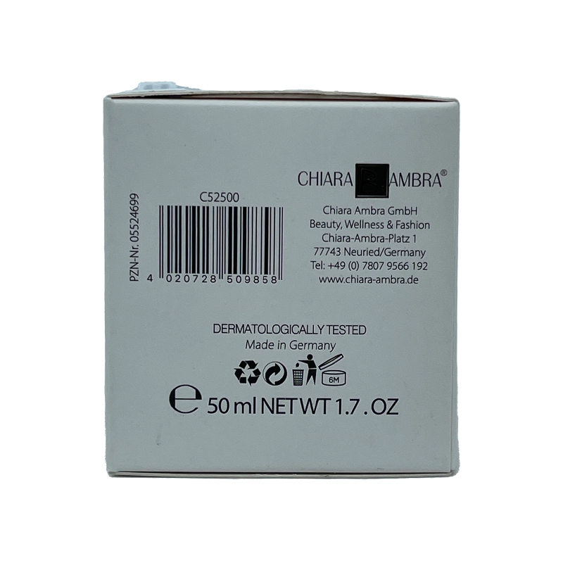 • حاوی هیالورونیک اسید طبیعی: کرم روز خاویار کیارا آمبرا ۵۰ میلی لیتر رطوبت عمیق فراهم می‌کند.