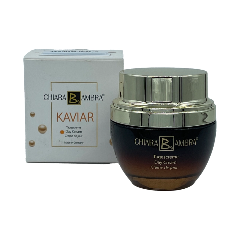 • حاوی عصاره خاویار: خاویار در کرم روزخاویار کیارا آمبرا ۵۰ میلی لیتر، منبع غنی پروتئین، اسیدهای چرب امگا-۳ و آمینواسیدها است که پوست را بازسازی می‌کند.
