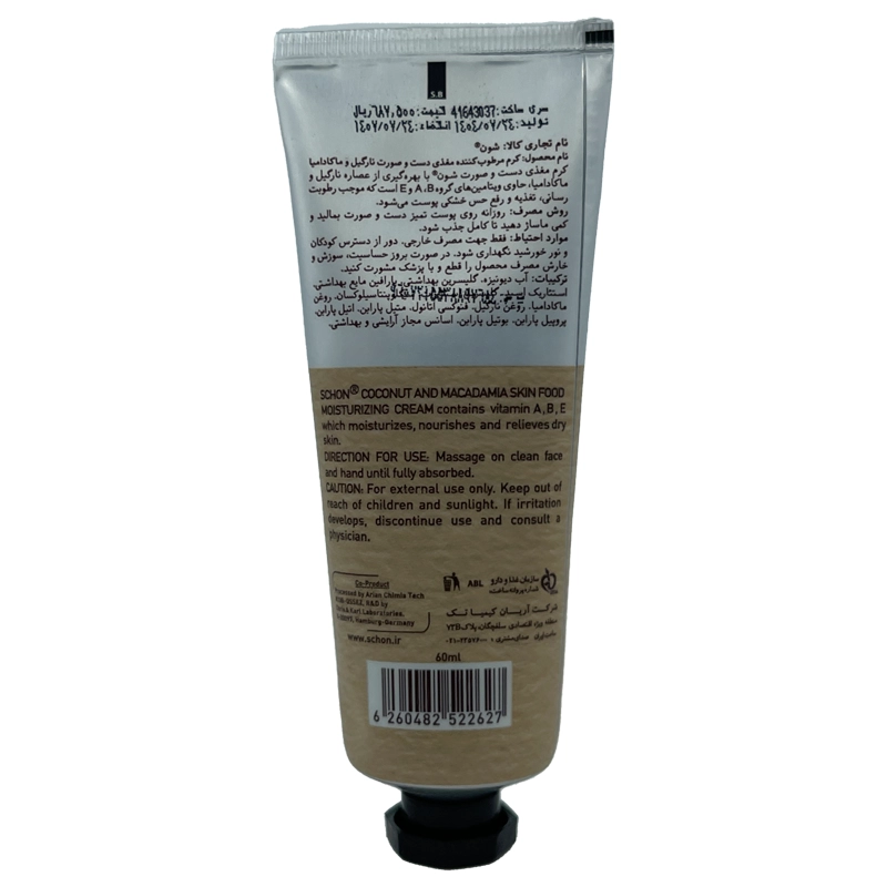 کرم مرطوب کننده نارگیل و ماکادمیا شون 60 میلی لیتر یکی از غنی‌ترین و مغذی‌ترین محصولات مراقبتی برند شون است.