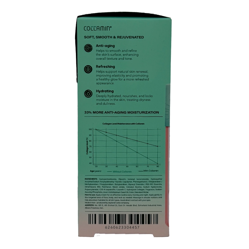 یکی دیگر از مزایای مهم این کرم مرطوب کننده، کمک به حفظ شادابی و طراوت پوست است. وجود کلاژن باعث می‌شود پوست ظاهر جوان‌تری داشته باشد و احساس کشیدگی کاهش یابد.