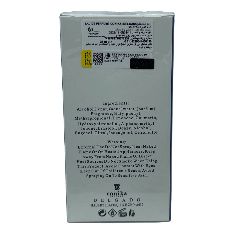 این ادوپرفیوم مردانه دلگادو مدل مفیستو با حجم ۲۵ میلی لیتر و بستهبندی شیشهای شیک و ارگونومیک، گزینهای ایدهآل برای حمل و استفاده روزانه است. ادوپرفیوم مردانه دلگادو مدل مفیستو فاقد پارابن، فتالات و مواد شیمیایی مضر بوده و با فرمولاسیون ایمن، برای انواع پوست، حتی پوستهای حساس، مناسب است. این محصول با ترکیبات مرطوبکننده و مغذی، نه تنها پوست را خوشبو میکند، بلکه از خشکی و تحریکات پوستی نیز جلوگیری میکند.