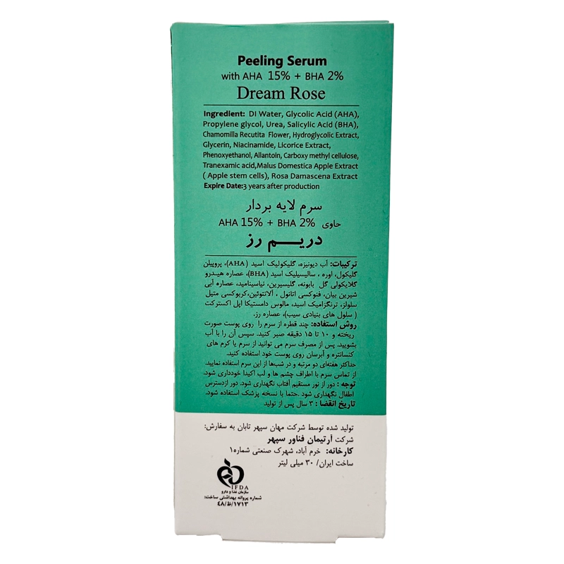 ویژگی های سرم لایه بردار دریم رز حاوی AHA 15% + BHA 2%