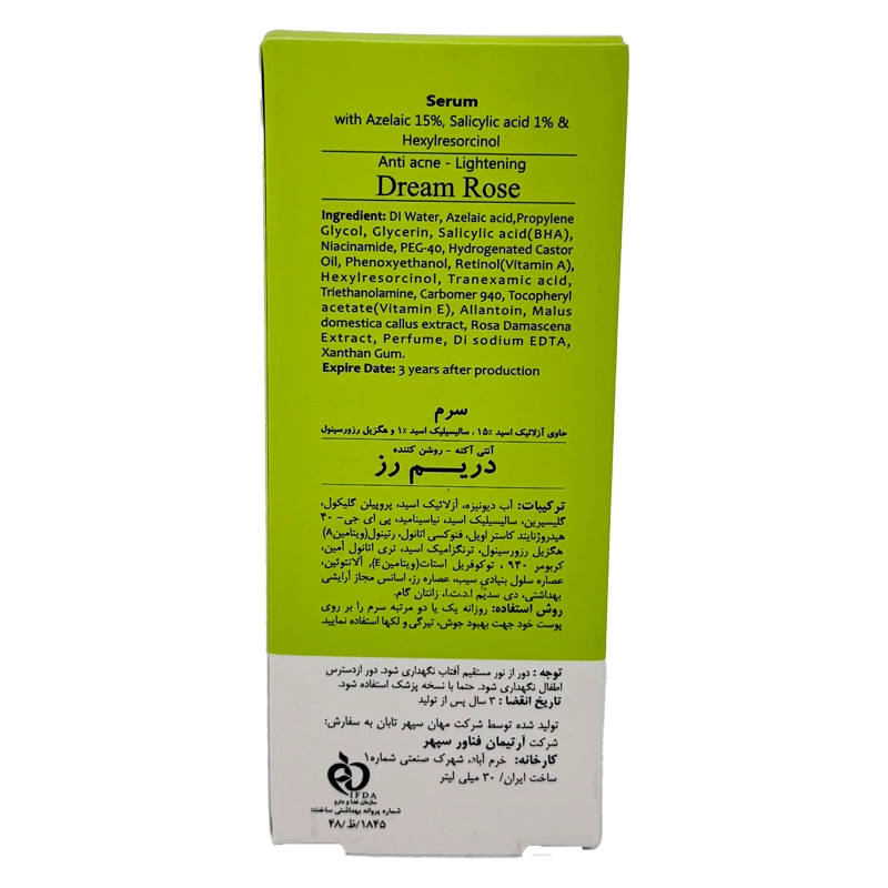 ترکیبات سرم آنتی آکنه و روشن کننده دریم رز