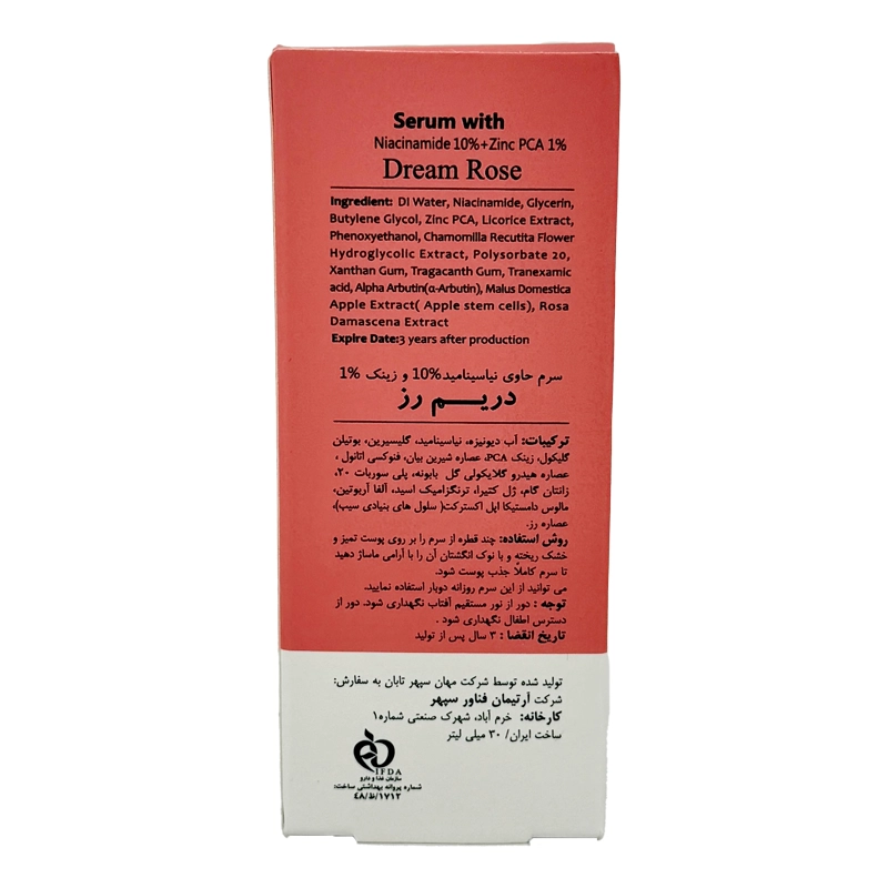 ترکیبات سرم.نیاسینامید ۱۰% + زینک %۱ دریم رز
