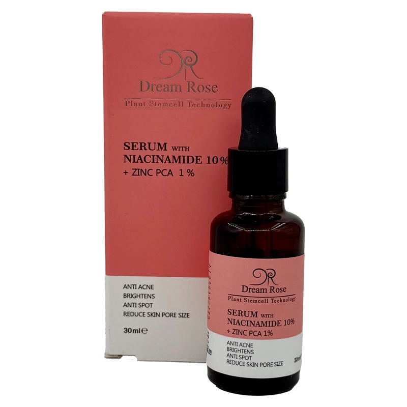نیاسینامید که یکی از اشکال پایدار ویتامین B3 محسوب می‌شود، به دلیل خواص چندگانه خود از جمله تنظیم ترشح سبوم، تقویت سد دفاعی پوست، کاهش التهاب و روشن‌کنندگی، جایگاه ویژه‌ای در محصولات مراقبت پوستی دارد. در کنار آن، زینک %۱ به‌عنوان یک عنصر معدنی مؤثر، نقش مهمی در کنترل چربی، کاهش فعالیت باکتری‌های مولد آکنه و تسریع روند ترمیم پوست ایفا می‌کند. ترکیب این دو ماده در سرم نیاسینامید دریم رز، محصولی کارآمد و چندمنظوره را به وجود آورده است.