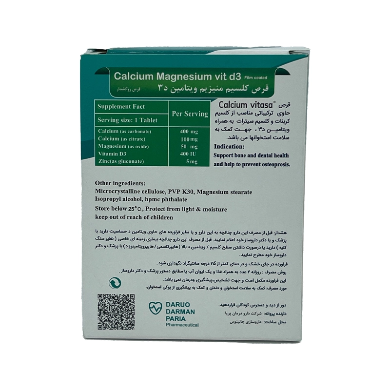 • قرص. کلسیم منیزیم ویتامین د۳ ویتاسا جایگزین رژیم غذایی نیست.
