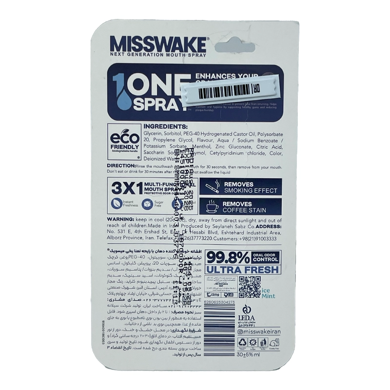 • بطری اسپری دقیق: بطری اسپری خوشبو کننده دهان میسویک ۳۰ میلی لیتر مقاوم و قابل بازیافت است و پاشش دقیق ارائه می‌دهد.