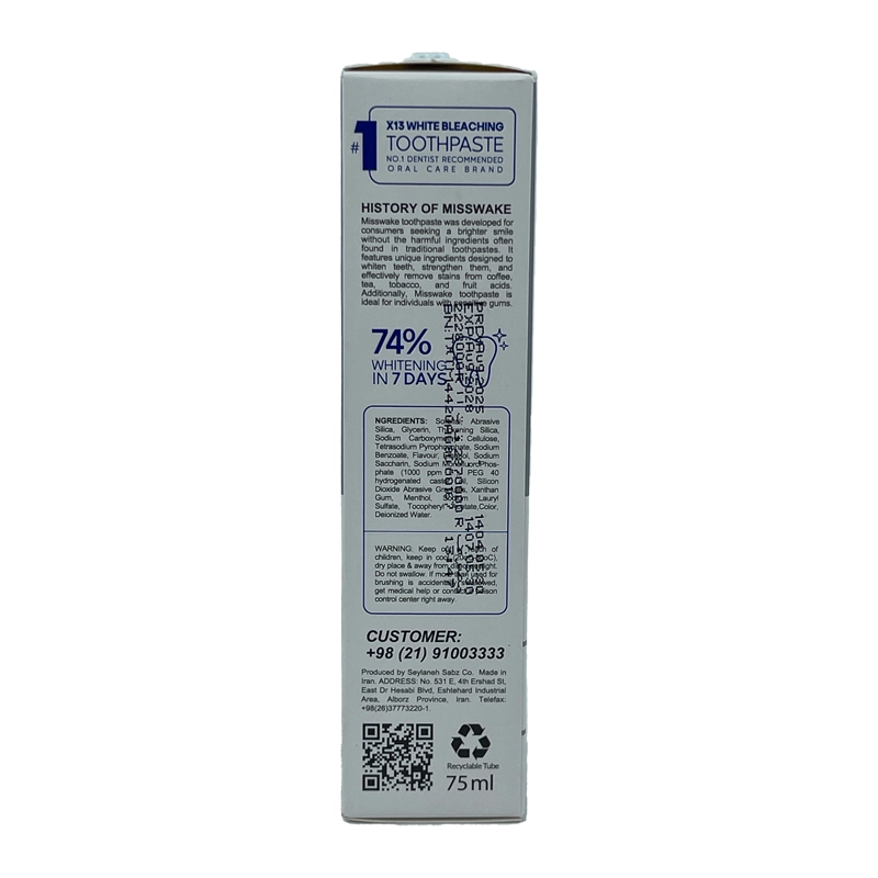 • سفیدکننده طبیعی: خمیردندان بلیچینگ میسویک ۷۵ میلی لیتر لکه‌های سطحی را به آرامی حذف می‌کند.