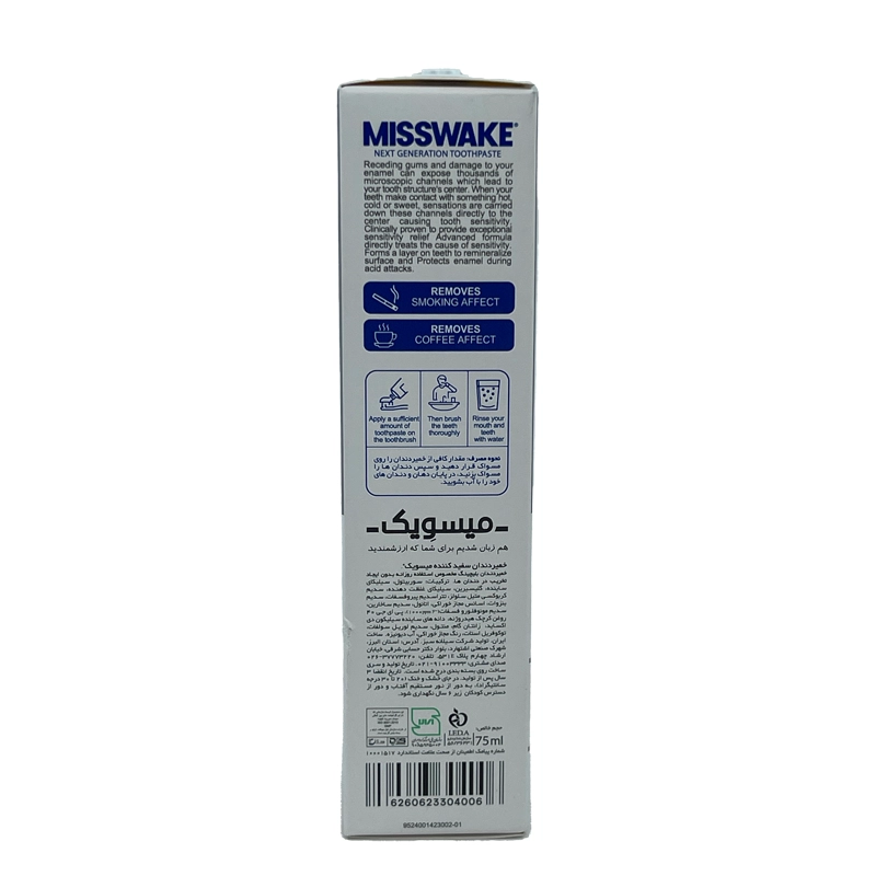 • بدون سولفات: خمیردندان بلیچینگ میسویک ۷۵ میلی لیتر بدون سولفات است.