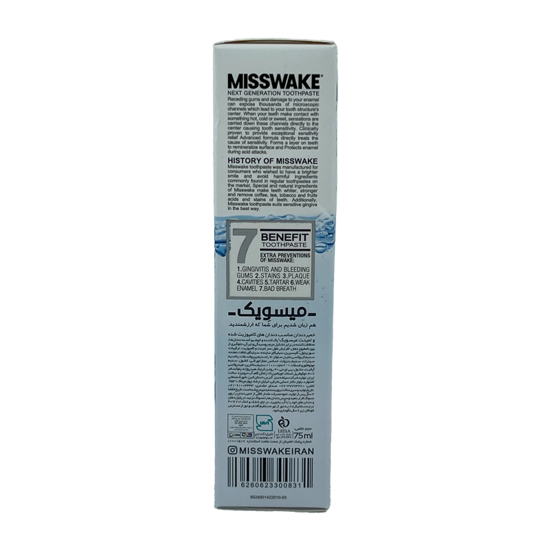 • سفید کننده ملایم: خمیردندان لمینت و کامپوزیت میسویک ۷۵ میلی لیتر سفید کننده ملایم است.