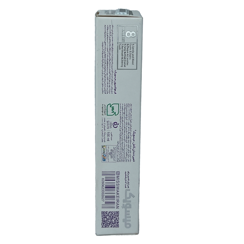 - بدون سولفات: خمیر دندان توتال ۸ پرونایت میسویک ۱۰۰ میلی لیتر بدون سولفات است.
