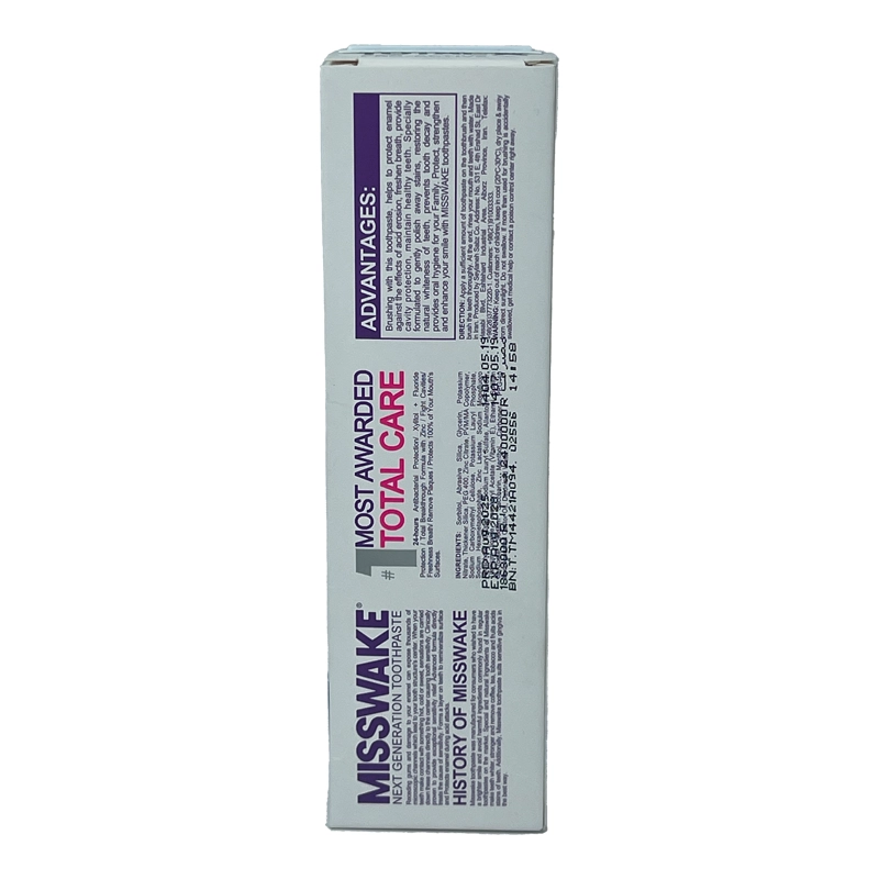 - محافظت ۸ کاره: خمیر دندان توتال ۸ پرونایت میسویک ۱۰۰ میلی لیتر از پوسیدگی، پلاک، التهاب، حساسیت، جرم، بوی بد، خشکی و عفونت جلوگیری میکند.