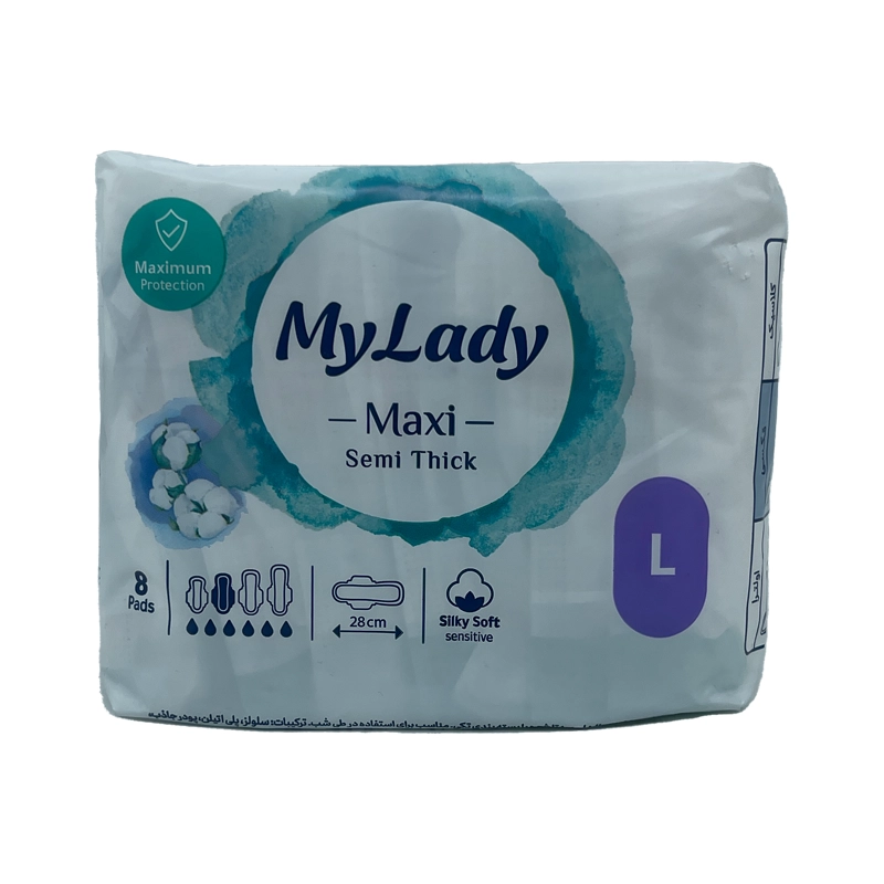 معرفی نوار بهداشتی مکسی نیمه ضخیم مای لیدی سایز بزرگ مناسب پوست حساس ۸ عدد