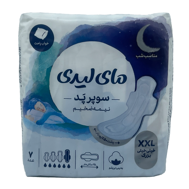 معرفی نوار بهداشتی پنبه ای سوپر پد نیمه ضخیم شب مای لیدی سایز خیلی خیلی بزرگ ۷ عدد