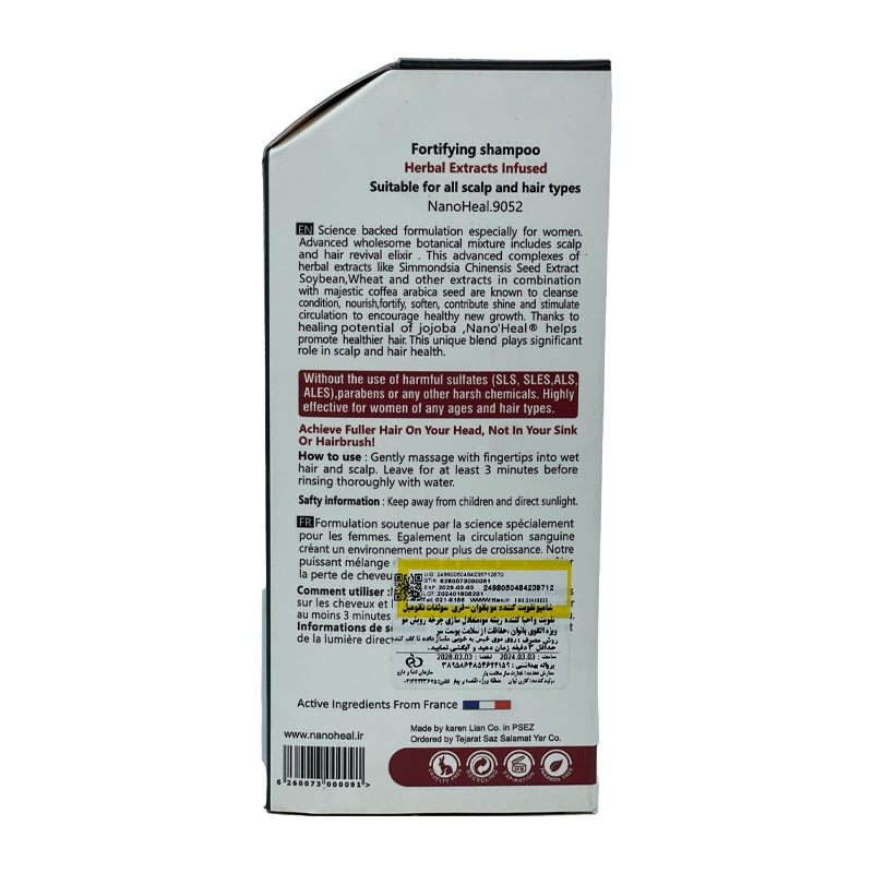 معرفی شامپو تقویتی موی سر بانوان فری سولفات نانوهیل ۲۵۰ میلی‌لیتر