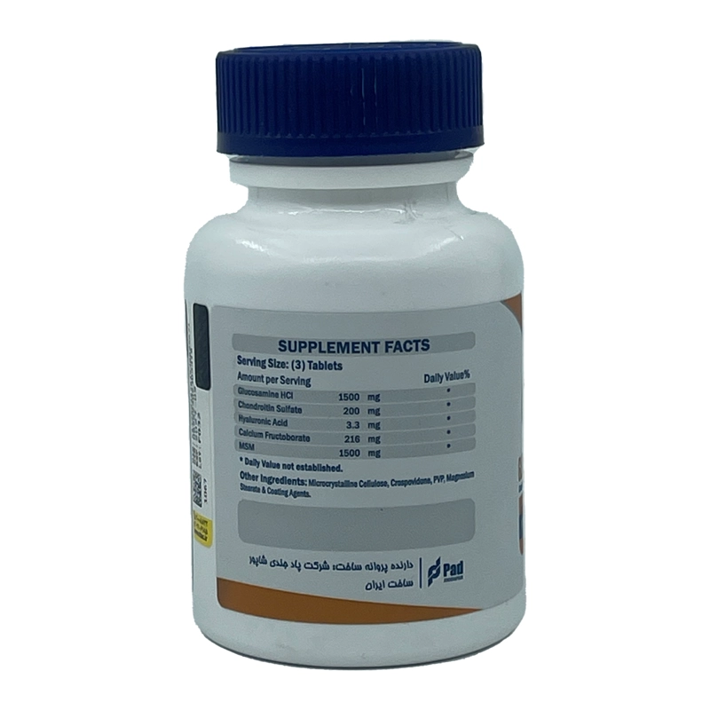 • حاوی ترکیبات غضروف‌ساز: وجود گلوکوزامین و کندرویتین، که به‌عنوان اجزای اصلی ساختار غضروف شناخته می‌شوند، این قرص را به مکملی تبدیل کرده که می‌تواند به طور مستقیم در بازسازی و تقویت مفاصل نقش داشته باشد.