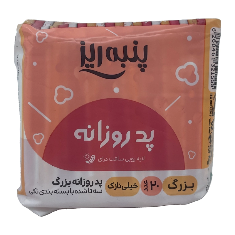 پد روزانه بزرگ پنبه ریز ۲۰ عددی یکی از محصولات بسیار باکیفیت و پرطرفدار برند مشهور «پنبه ریز» است که به‌طور خاص برای بانوان طراحی شده است.