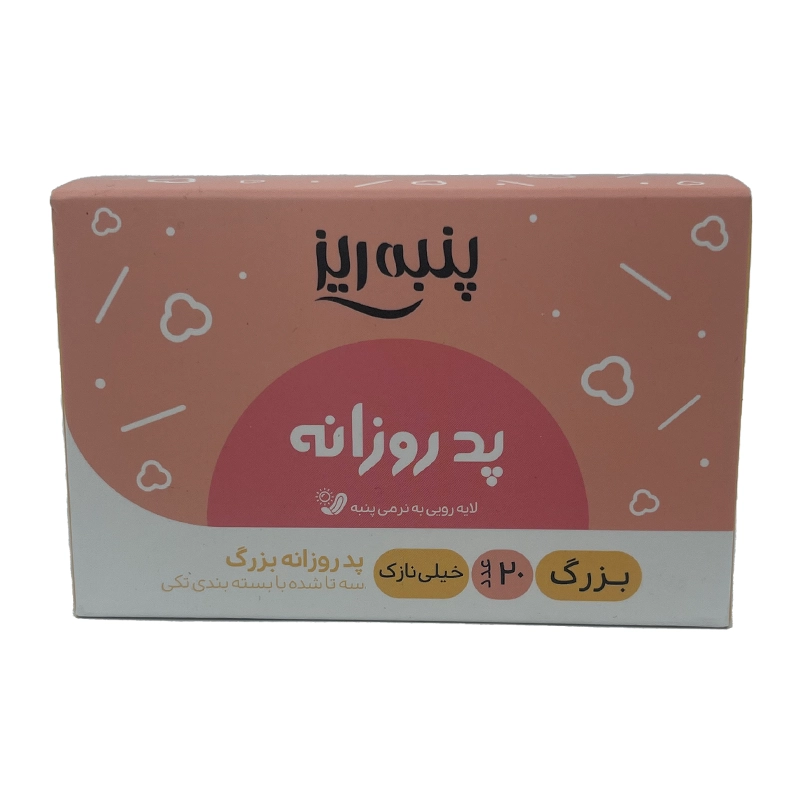 پد روزانه بزرگ خیلی نازک پنبه ریز ۲۰ عددی یکی از محصولات پیشرفته و باکیفیت برند معتبر پنبه ریز است که برای استفاده روزانه بانوان طراحی شده است.