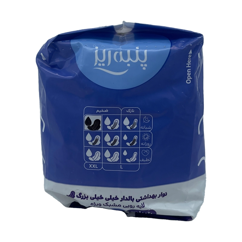 نوار بهداشتی بالدار خیلی خیلی بزرگ پنبه ریز ۱۰ عددی یکی از محصولات استاندارد و تخصصی برند پنبهریز است که برای روزهای سنگین قاعدگی و برای افرادی که میزان ترشح در دورهی ماهانه آنها بیشتر از حد معمول است طراحی شده است. این محصول با سایز بسیار بزرگ و قابلیت پوششدهی کامل، در دستهی نوار بهداشتیهای ویژه قرار میگیرد و فضای بیشتری از لباس زیر را پوشش میدهد؛ به همین دلیل احساس امنیت، راحتی و آرامش بیشتری را هنگام فعالیتهای روزمره و حتی هنگام خواب فراهم میکند.