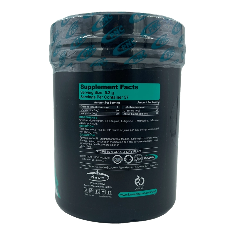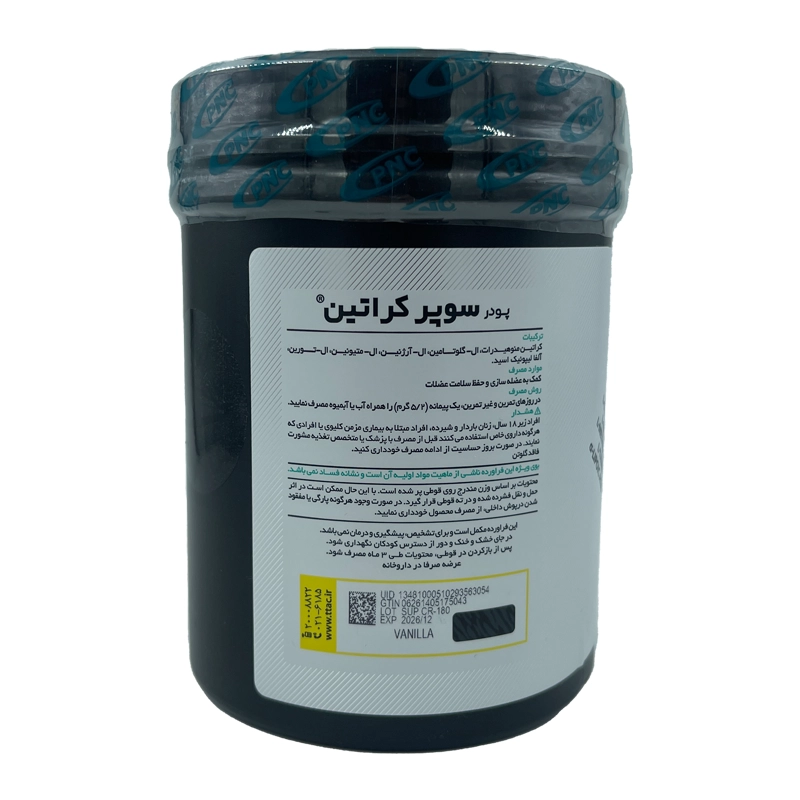 پودر سوپر کراتین پی ان سی ۳۰۰ گرم، محصولی برجسته از شرکت معتبر کارن (PNC) در ایران، مکملی پیشرفته برای ورزشکاران، بدنسازان و افرادی است که به دنبال بهبود عملکرد ورزشی، افزایش حجم عضلانی و تسریع ریکاوری هستند. این مکمل با فرمولاسیونی علمی، ترکیبی از کراتین مونوهیدرات خالص و آمینو اسیدهای کلیدی مانند ال-گلوتامین، ال-آرژنین، ال-متیونین، ال-تورین و آلفا لیپوئیک اسید را ارائه می‌دهد. پودر سوپر کراتین پی ان سی با طعم دلپذیر وانیل، حلالیت بالا و جذب سریع، برای تمرینات سنگین و انفجاری مانند وزنه‌برداری، دو سرعت و ورزش‌های ترکیبی ایده‌آل است.
