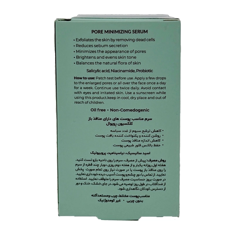 این سرم پوست همچنین به پاکسازی عمقی منافذ کمک کرده و از تجمع آلودگی و چربی اضافی جلوگیری میکند. در نتیجه، پوست ظاهری ماتتر، شفافتر و سالمتر پیدا میکند.