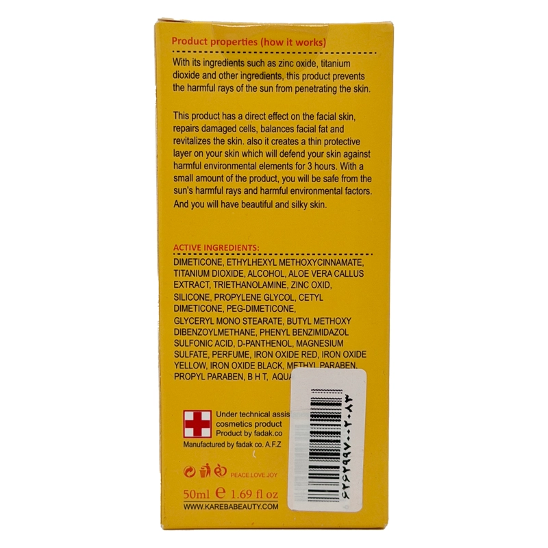 ترکیبات کرم ضد آفتاب رنگی فاقد چربی SPF50 کاربا