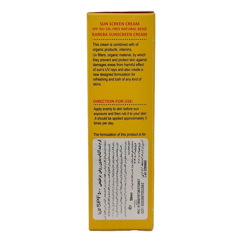 کرم ضد آفتاب رنگی فاقد چربی SPF50 کاربا ۵۰ میلی لیتر