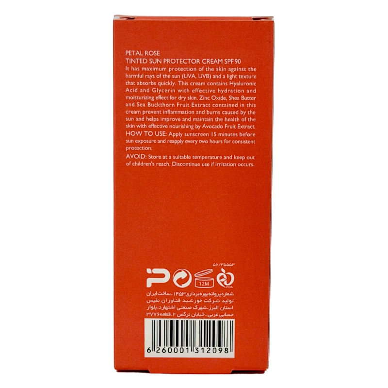 ترکیبات کرم ضد آفتاب رنگی پوست خشک SPF90 پتال رز