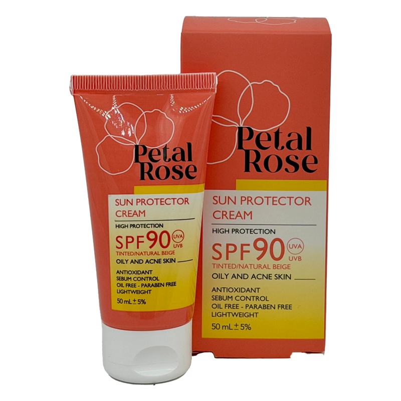 معرفی کرم ضد آفتاب رنگی پوست چرب SPF90 پتال رز ۵۰ میلی لیتر