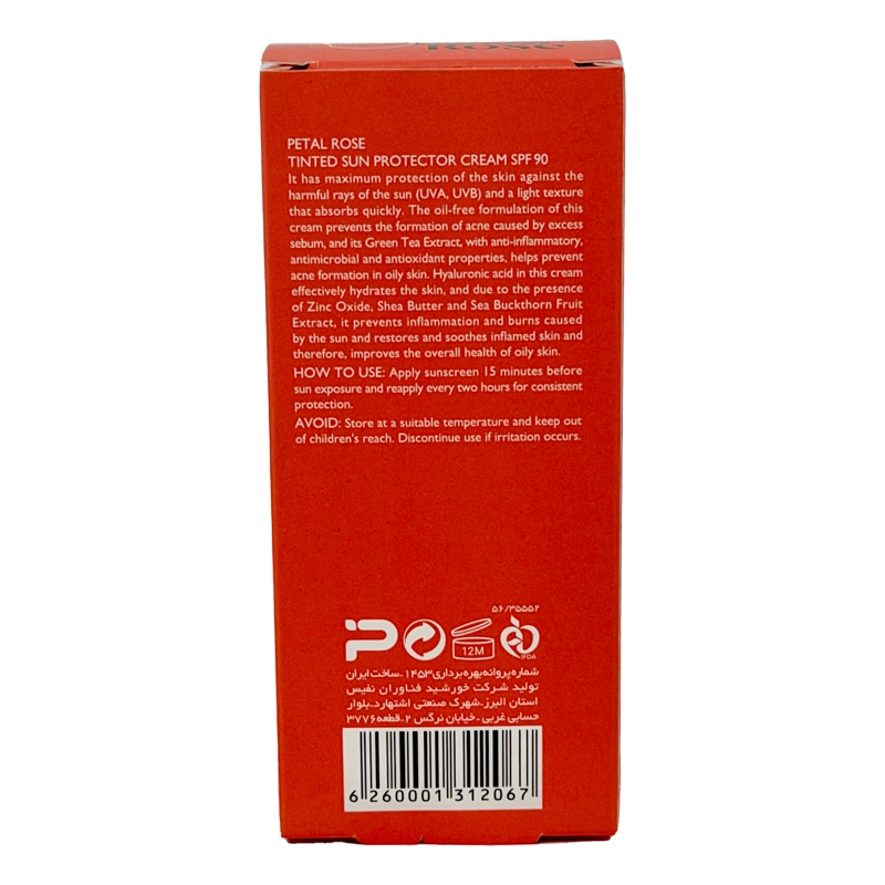 ترکیبات کرم ضد آفتاب رنگی پوست چرب SPF90 پتال رز