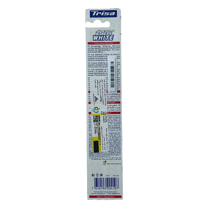 مسواک پرفکت وایت متوسط تریزا، یکی از محصولات پیشرفته و محبوب برند سوئیسی Trisa است که به طور خاص برای افرادی طراحی شده که به دنبال ترکیبی از تمیزکاری عمیق و سفیدکنندگی طبیعی دندان‌ها هستند.