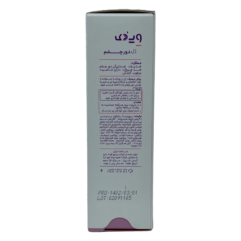 • صاف کردن چین و چروک: ژل دور چشم ویدک ۲۰ میلی لیتر خطوط ریز و پنجه‌کلاغی را به‌طور قابل‌توجه کاهش می‌دهد.