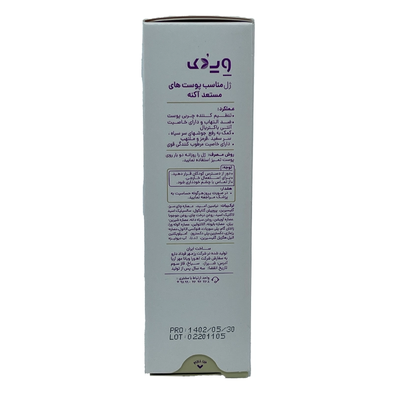 • نتایج بالینی: کاهش ۶۸% جوش‌ها در ۴ هفته با ژل ضد جوش ویدک ۳۰ میلی لیتر.